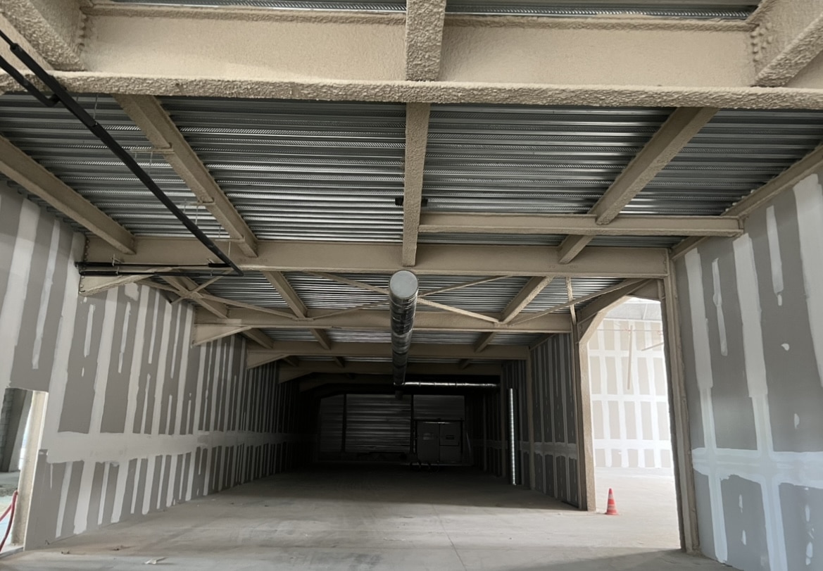 Protégez vos sites de production, hangars et ateliers contre les risques d’incendie grâce à nos techniques de flocage haute performance adaptées aux grandes hauteurs et aux structures métalliques.